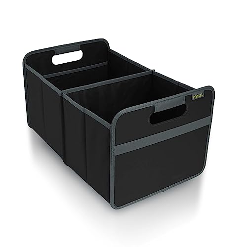 - Die meori Faltbox L bietet 2 Fächer (Maße: 32x50x27,5cm / 30Liter), trägt bis 30 kg und faltet sich superflach. Perfekt für Auto, Großeinkauf und Camping; als Organizer daheim und im Büro.